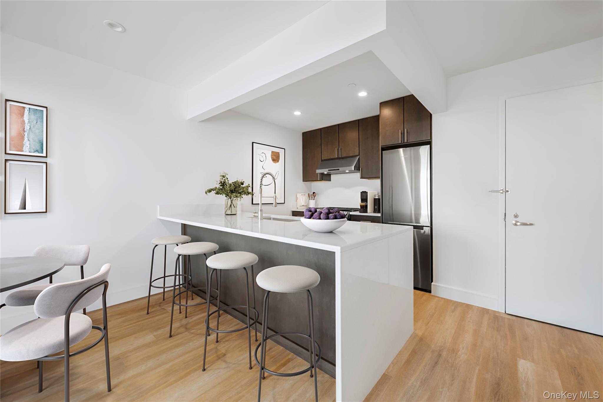 Welcome home to 28-15 35th Street, spaciously crafted residences with exceptional finishes and amenities. Spacious one bedroom with 40sf private balcony available now. These efficiently laid-out one-bedroom apartments boast oversized windows, modern and refined finishings, complete with wide plank oak flooring. The thoughtfully meticulous kitchens embrace all the stylish elements, maximizing luxury and comfort. Exquisitely designed with dark wood cabinetry from ADVANTA, enhanced by stainless steel hardware, integrating stainless steel appliances Samsung refrigerator, dishwasher, and gas range oven with custom Organic White Caesarstone countertops and backsplash. All the residences include the convenience of an in-unit LG washer and dryer. The well-designed bathrooms are complete with premium ceramic tiling, Symmons shower head, Laufen toilet, & a top of the line vanity mirror with built- in LED lighting. Most of the residences include private balconies or larger private terraces. Residents will have the convenience of a spacious media recreational lounge with a fireplace, where one can entertain guests or unwind. The stunning rooftop deck embraces breathtaking views of Manhattan and Queens where residents can enjoy the beautiful sunsets! Comprised of 20 homes with additional amenities including a virtual doorman system, bike storage room, common laundry room facility, and indoor garage parking (additional monthly fee). All this in the vibrant and conveniently located neighborhood of Astoria. You are immersed in a dynamic location that features the best cuisines/restaurants out there from all different parts of the world in Astoria. You are minutes to the N/W trains at 30th Ave station & East River Ferry - easy access to Manhattan, LIC and Brooklyn. The Astoria East River waterfront and Socrates Sculpture Park are a short distance and offer residents easy access to the neighborhood's relaxing public spaces, galleries, enticing dining scene, and performance venues. Parking available for additional charge.